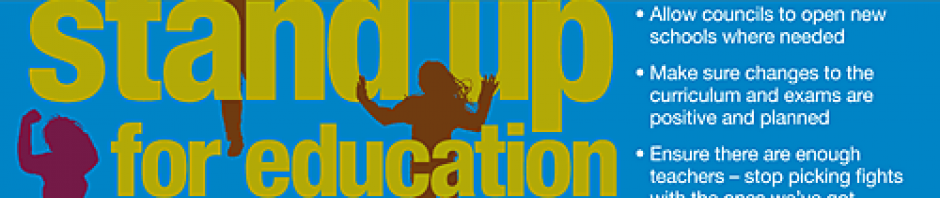 We are an informal group of academics and educational researchers who support the broad policy agenda presented in the NUT‘s Stand Up for Education campaign. The Stand Up for Education manifesto can be downloaded here. We see the Stand up for Education initiative as a welcome attempt to present a much more positive and optimistic vision of education than that currently on offer